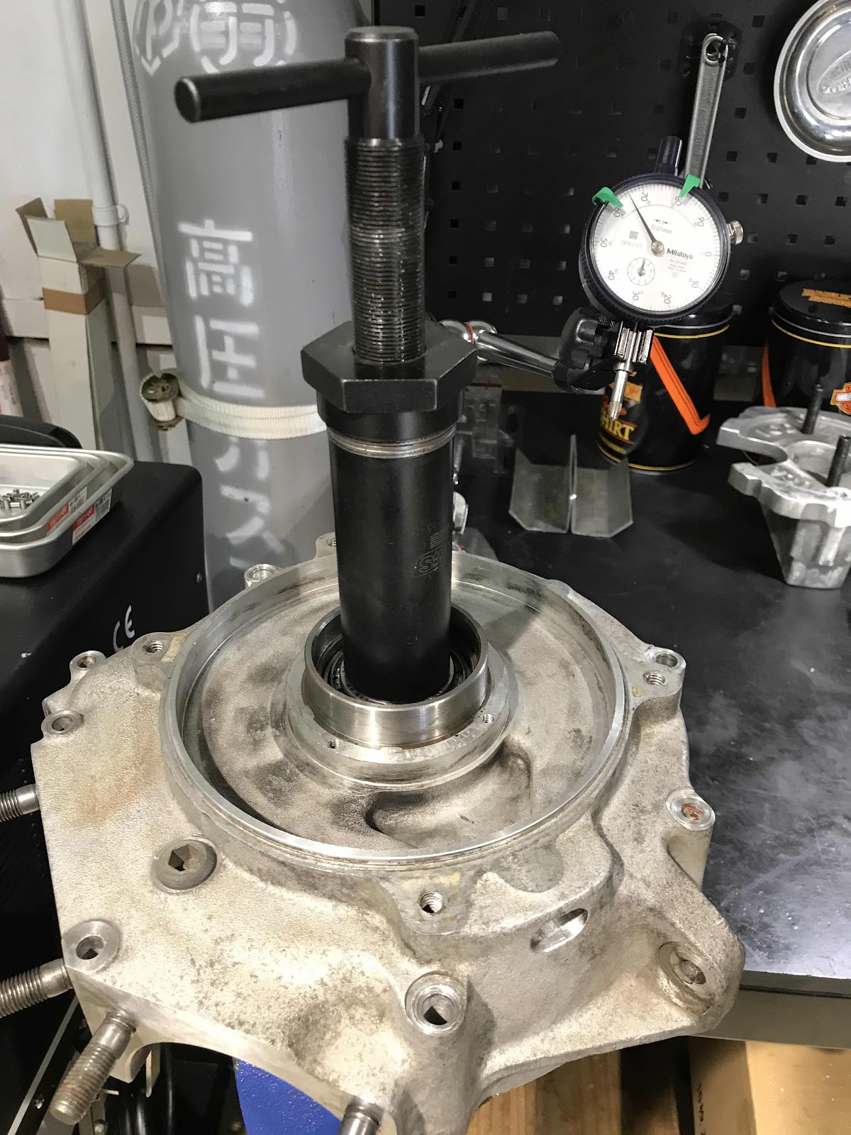 ピニオンシャフトにベアリングを取り付けます、ケースに圧入されているレースとのクリアランスは基準値内でした