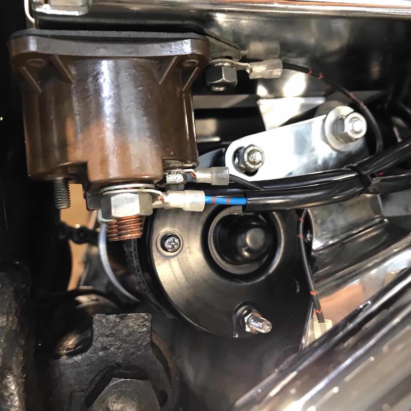スタートボタンからスターターリレーへ、さらにソレノイドまで配線をつないでいきます