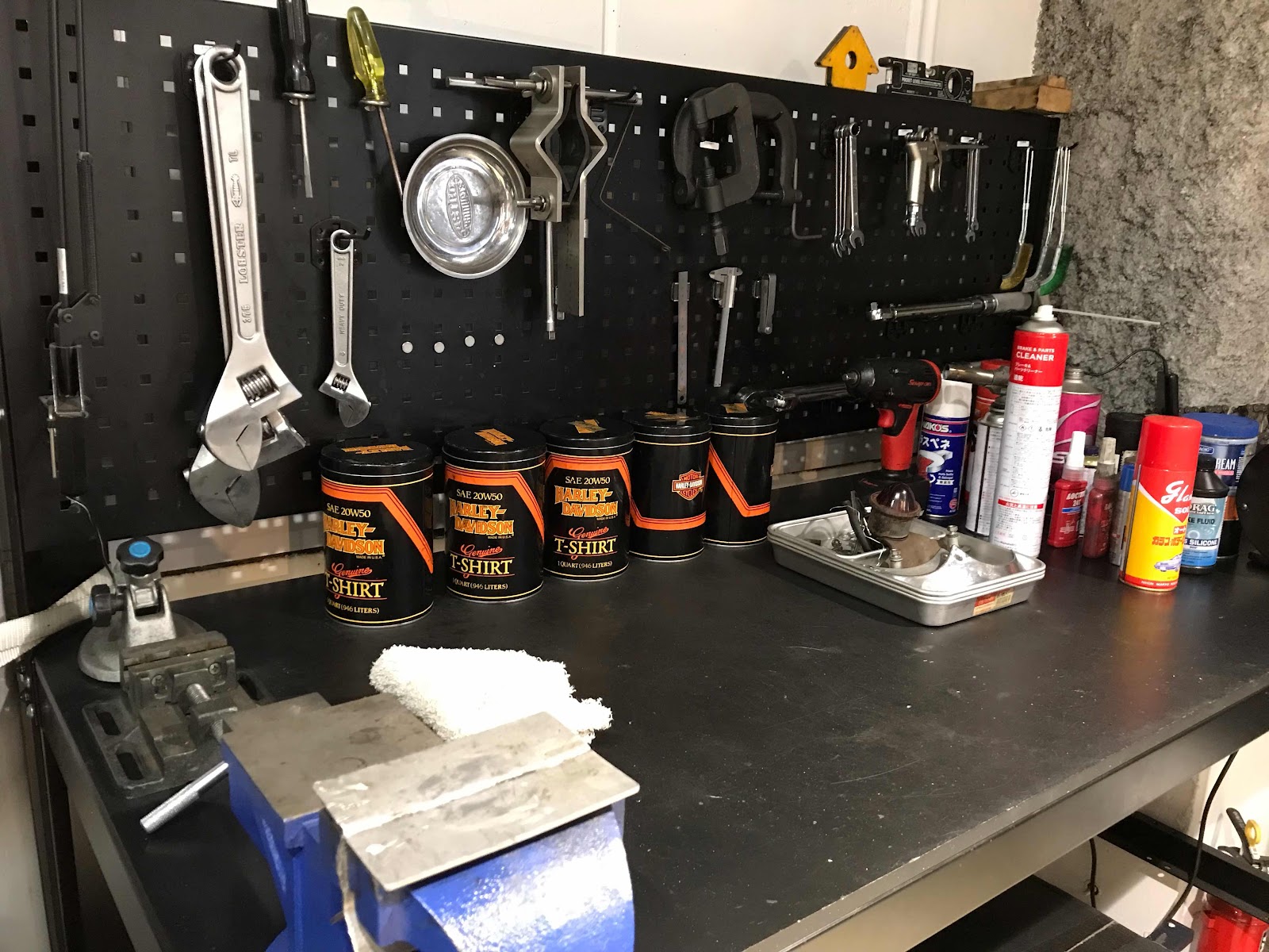 5年目を迎える丈夫な作業台、今年も一年ぶっ叩いたり、グリグリやったり、足かけたり、とよく耐えてくれました